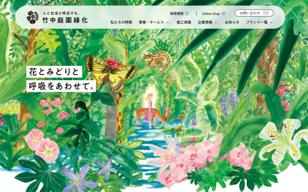 竹中庭園緑化は、植物に関わるあらゆるサービスを網羅する「花とみどり」のトータルコーディネーターです。日本全国からのご依頼に対応していますので、お気軽にお問い合わせください。